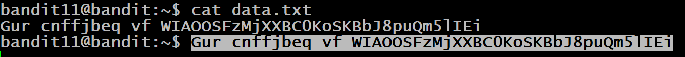 The password for the next level is stored in the file data.txt, where all lowercase (a-z) and uppercase (A-Z) letters have been rotated by 13 positions