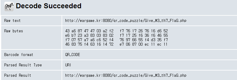온라인 디코더를 이용해서 QR코드를 확인을 했다.