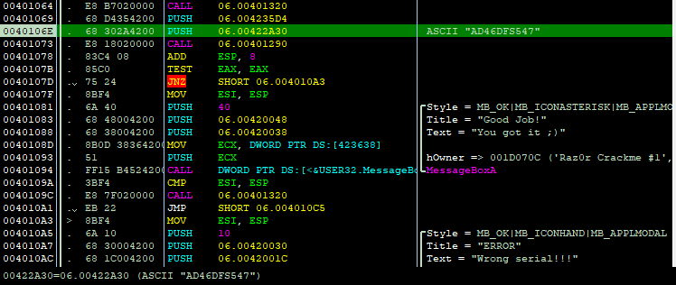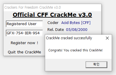 문제의 답은 OEP를 구한 후 '등록성공' 으로 가는 분기점의 OPCODE를 구하시오. 정답인증은 OEP + OPCODE