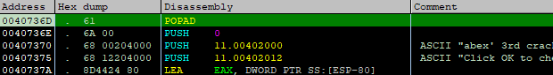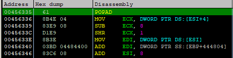 POPAD를 검색해주면 사용된 모든 POPAD가 나오는데 제일먼저 나온 POPAD안으로 들어가 보았다.