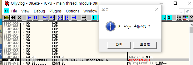 OllyDBG로 열고나서 디버깅을 진행해 보았다.