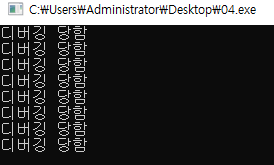 함수 내부에서 디버깅을 탐지한후 탐지 여부에 따라서 정상과 디버깅당함이라는 문자열을 무한 반복한다.