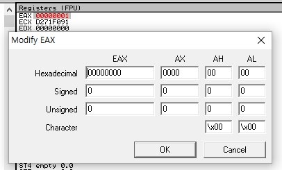 POPAD 이후로도 실행을 해보았지만 레지스터 값이 변하지 않았다