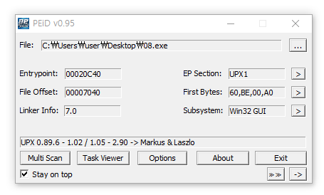 패킹의 유무를 확인해보았는데 UPX 패킹이 아니라 ASPack 패킹인것 같다 그래서 ASPack이 무엇인지 검색을 해보니
