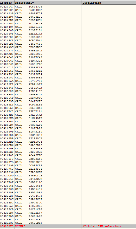 레지스터 상태에서도 볼수있듯이 PUSHAD명령을 수행하고 나서 레지스터의 모든 값을 스택에 넣고 시작한다.