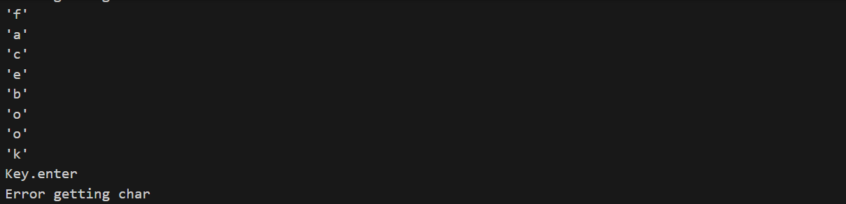 문자열로 facebook을 입력했을때 각각의 문자를 정확하게 받아오고 특수키가 'Enter' 같은 것들이 입력이 되었을때는